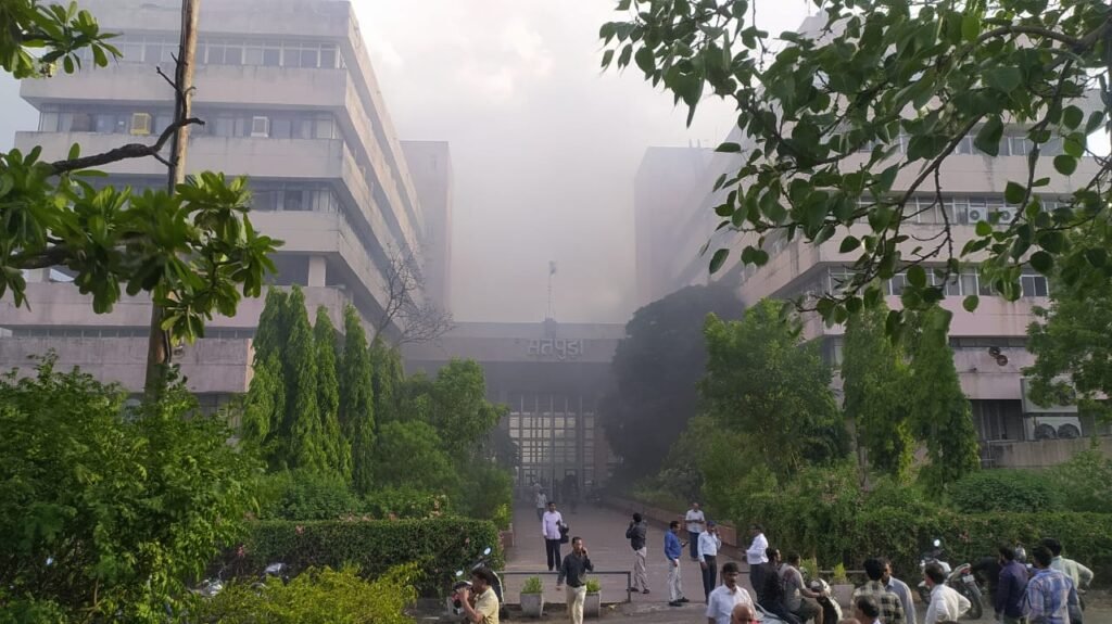 सतपुड़ा भवन में लगी भीषण आग के बाद इलाके में धुएं का गुबार साफ तौर पर देखा जा सकता है। साथ ही आसपास की जगहों पर अफरातफरी का माहौल भी बना हुआ है। दमकल कर्मियों के साथ पुलिस विभाग के अधिकारी भी मौके पर मौजूद है। तीसरी मंजिल में जनजातीय कार्य संचालनालय के एसी में लगी आग छठी मंजिल तक पहुंच गई है।