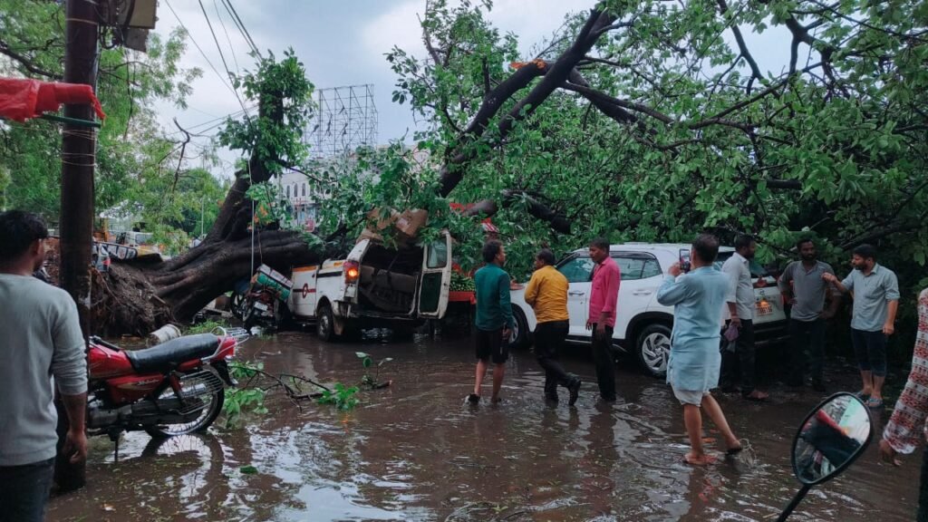 • श्रमायुक्त कार्यालय के सामने पेड़ व बिजली पोल गिरा