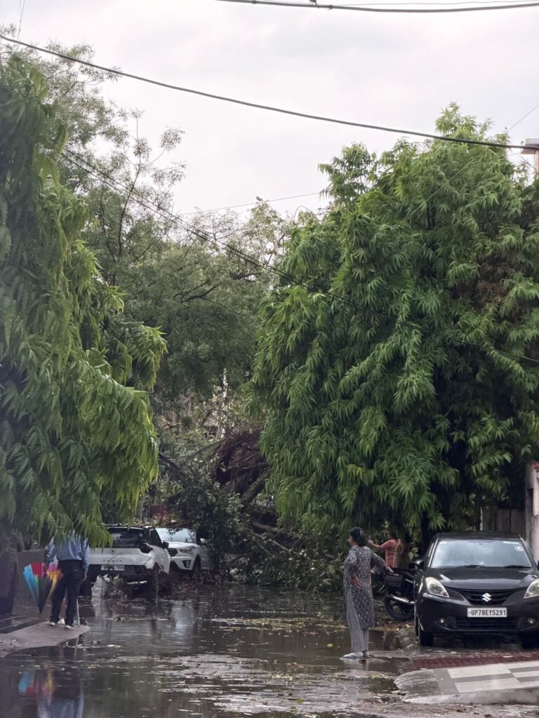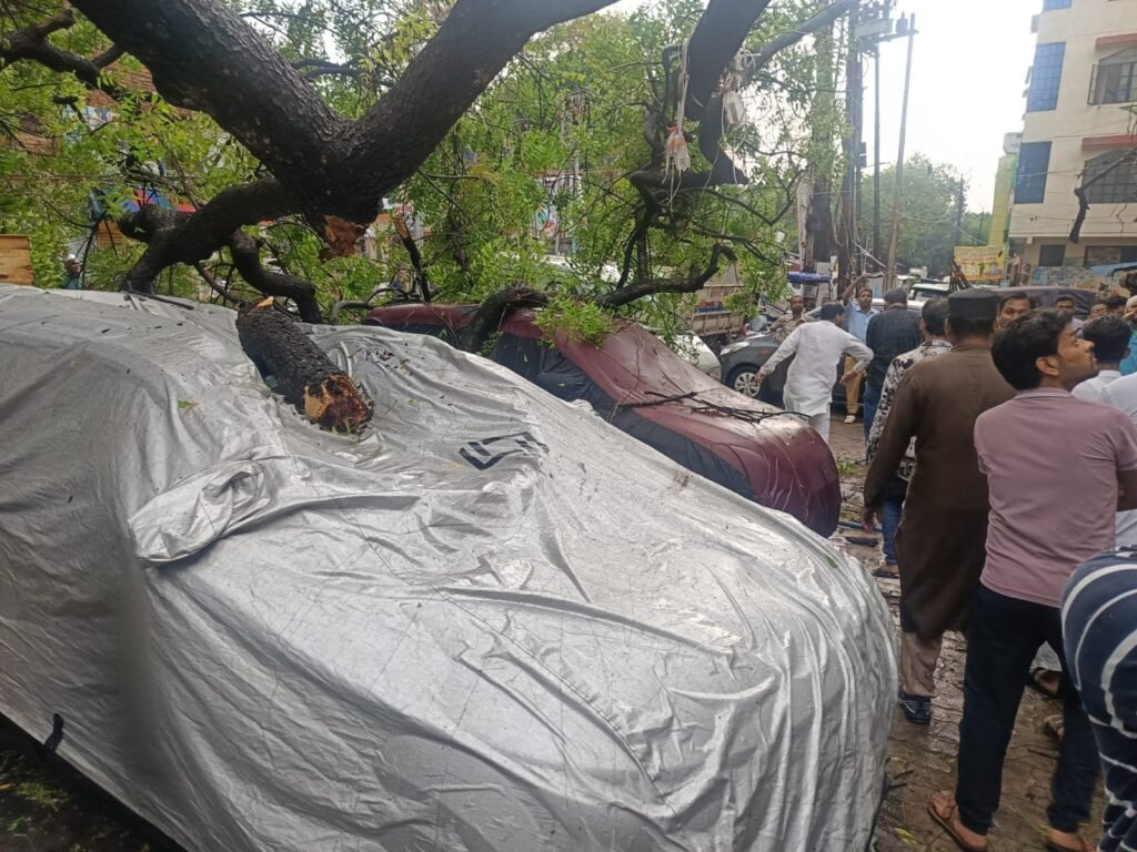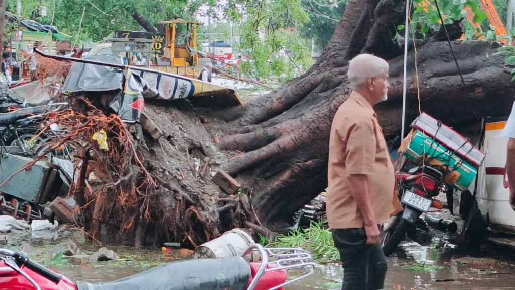 • फजलगंज चौराहे पर कई पेड़ धराशायी