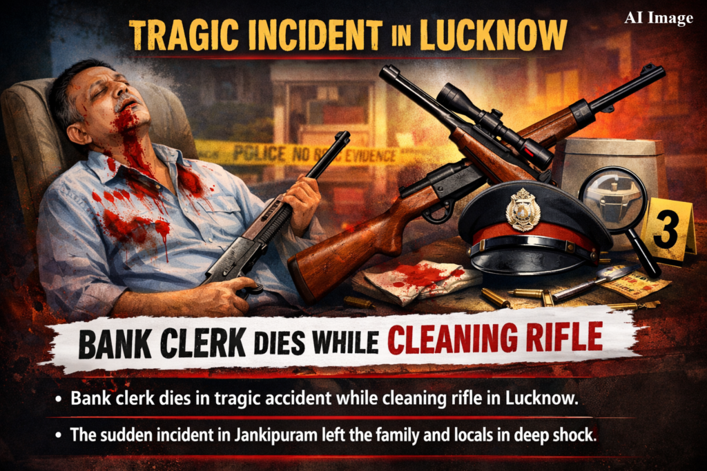 उत्तर प्रदेश की राजधानी लखनऊ के जानकीपुरम इलाके में शनिवार सुबह एक दर्दनाक हादसा सामने आया, जिसमें यूनियन बैंक ऑफ इंडिया के एक क्लर्क की गोली लगने से मौत हो गई। प्रारंभिक जानकारी के अनुसार, मृतक अपने घर के अंदर लाइसेंसी राइफल साफ कर रहे थे, तभी अचानक गोली चल गई और यह हादसा हो गया।