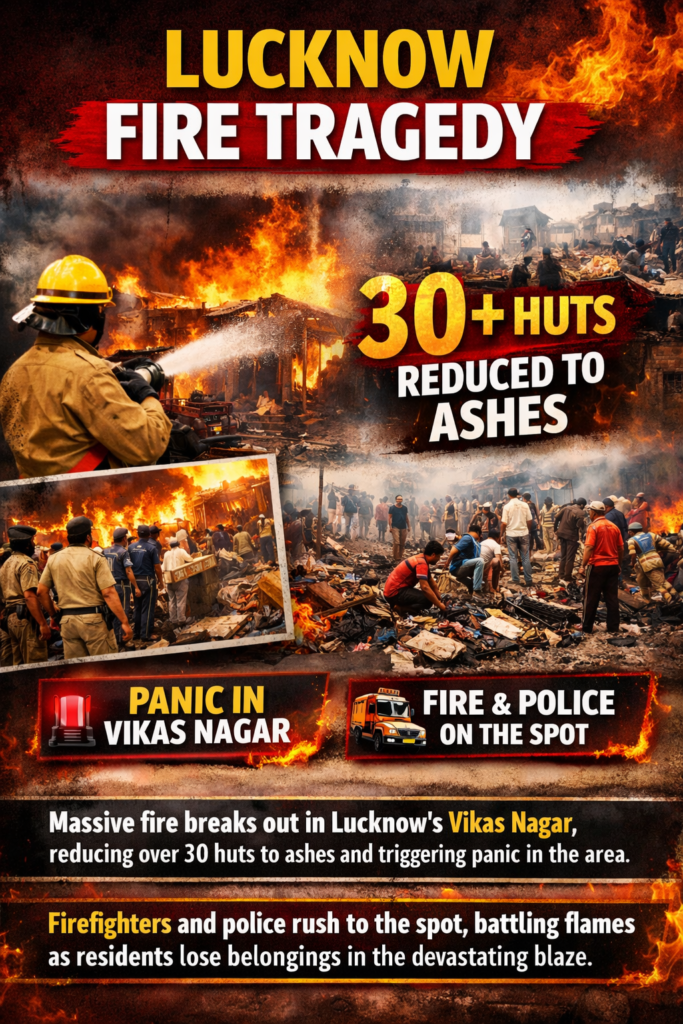 लखनऊ में भीषण आग से मचा हड़कंप, 30 से ज्यादा झोपड़ियां जलकर राख