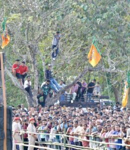 असम में भी उत्तर प्रदेश के मुख्यमंत्री योगी आदित्यनाथ का जादू जमकर चला। बरछला जनसभा में सीएम योगी को देखने व सुनने के लिए जबरदस्त भीड़ उमड़ी। खासतौर पर युवा पेड़ों व वाहनों पर चढ़कर योगी आदित्यनाथ की एक झलक पाने का प्रयास करते रहे। सीएम योगी ने भी हाथ हिलाकर असमवासियों का अभिवादन किया। इस दौरान ‘बुलडोजर बाबा की जय’ नारे भी लगे।