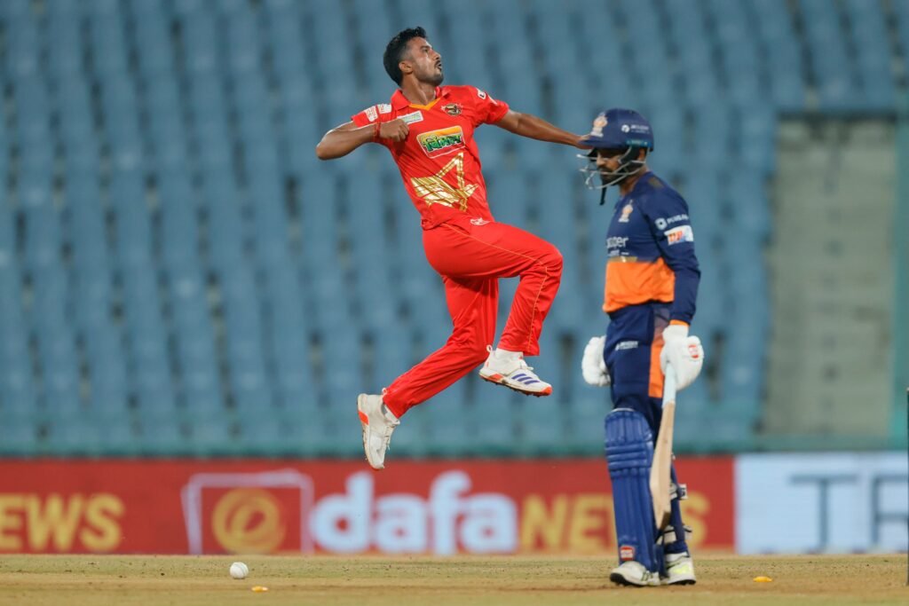 जवाब में काशी रुद्राज़ की पारी लड़खड़ा गई। कप्तान करण शर्मा पहली ही गेंद पर एलबीडब्ल्यू हो गए। अंकुर शर्मा ने अपने पहले ओवर में दो बल्लेबाज़ों को बोल्ड किया और 7वें ओवर तक स्कोर 27/4 हो गया। इसके बाद बल्लेबाज़ संभल ही नहीं पाए।