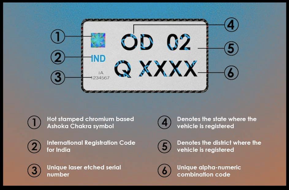 हाई सिक्योरिटी नंबर प्लेट एल्यूमीनियम धातु से विशेष प्रकार से बनाया जाता है। इसमें सात नंबर का यूनिक कोड होता है, जिसके माध्यम से वाहन स्वामी का सारा का सारा डिटेल आसानी से निकाला जा सकता है। कोड में चेसिस और इंजन नंबर भी दर्ज किया जाता है। किसी भी दुर्घटना के समय वाहन स्वामी का आसानी से डिटेल निकाला जा सकता है।