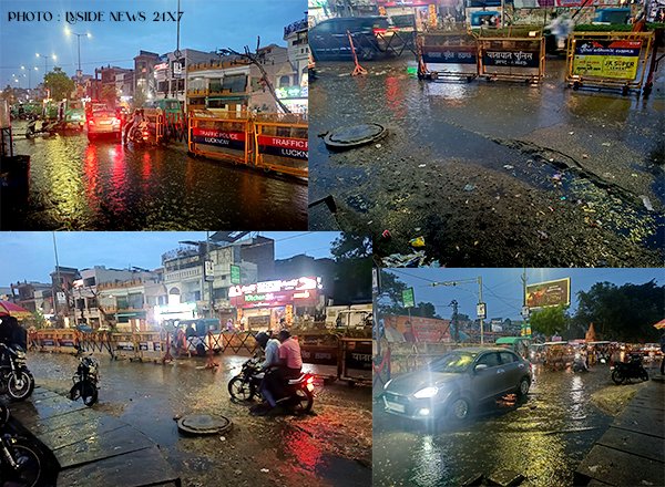 20 मिनट की बारिश में ही लखनऊ के इंजीनियरिंग कॉलेज चौराहे के पास सड़क पर हुआ जलभराव, नगर निगम की खुली पोल, जनता में नाराज़गी